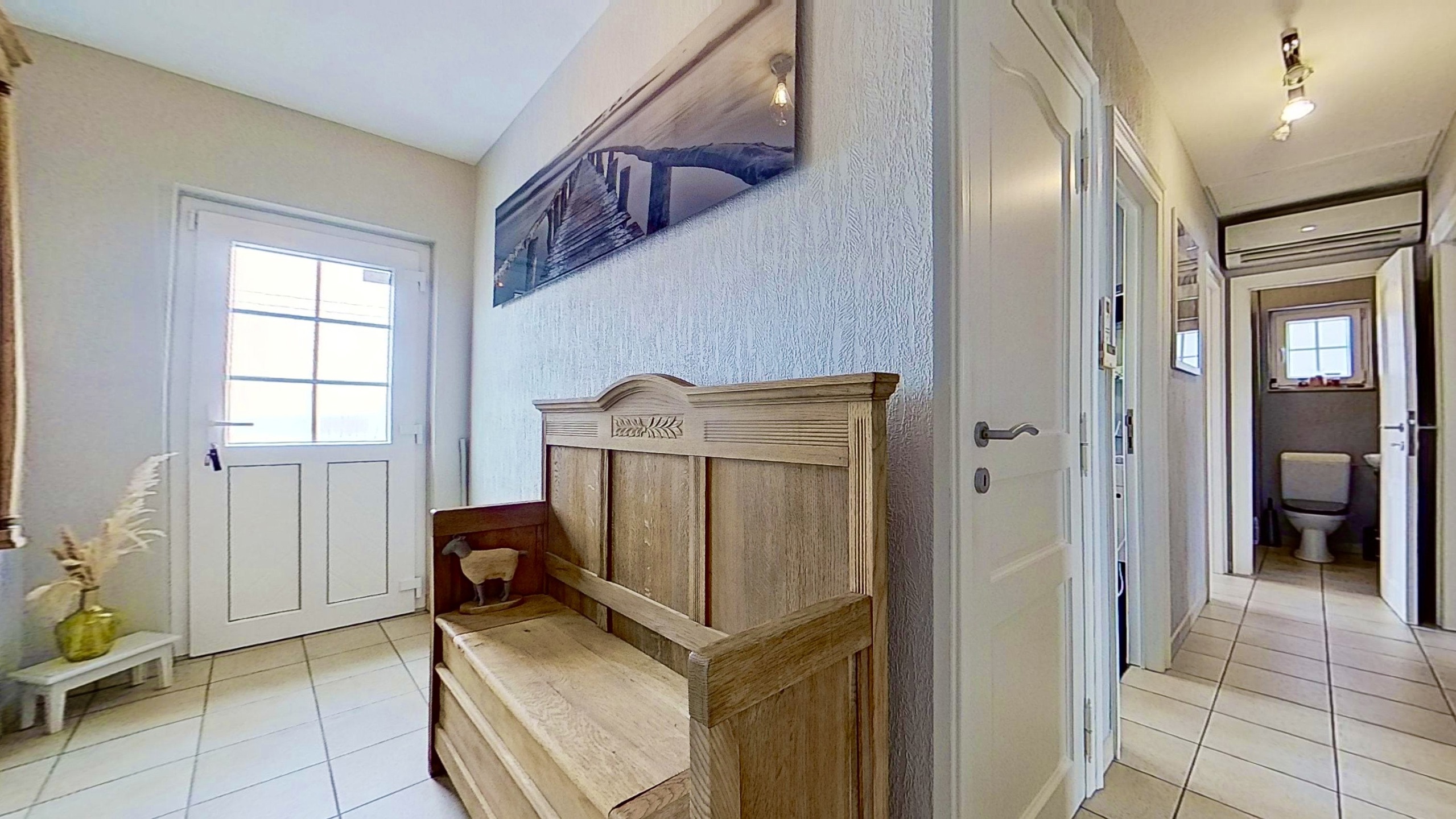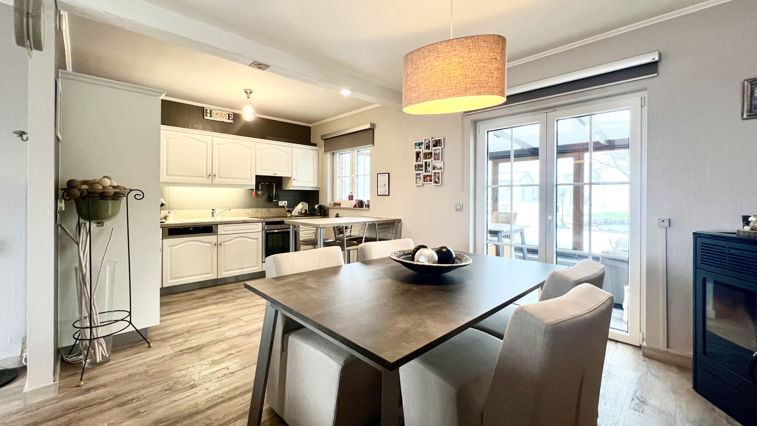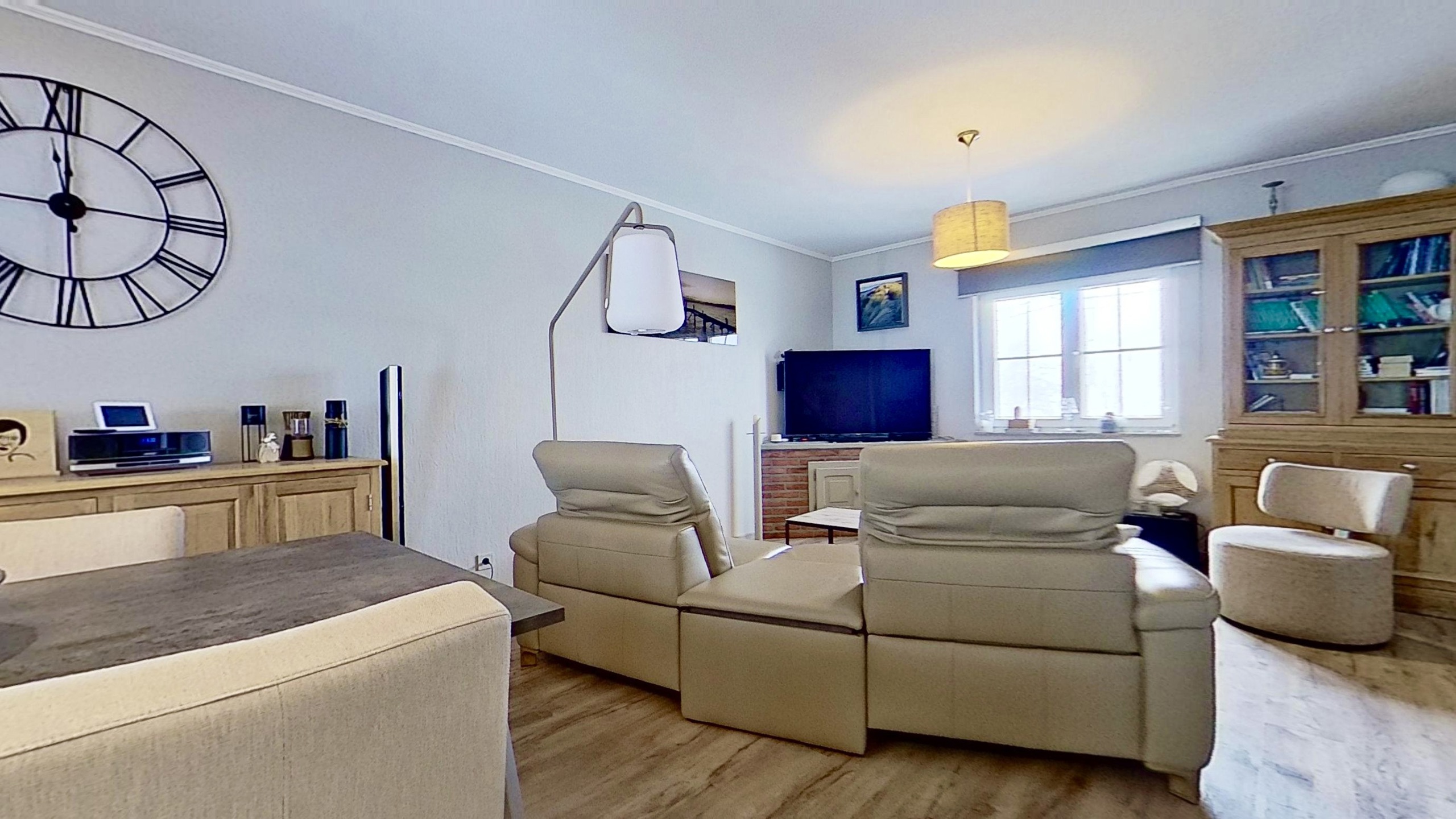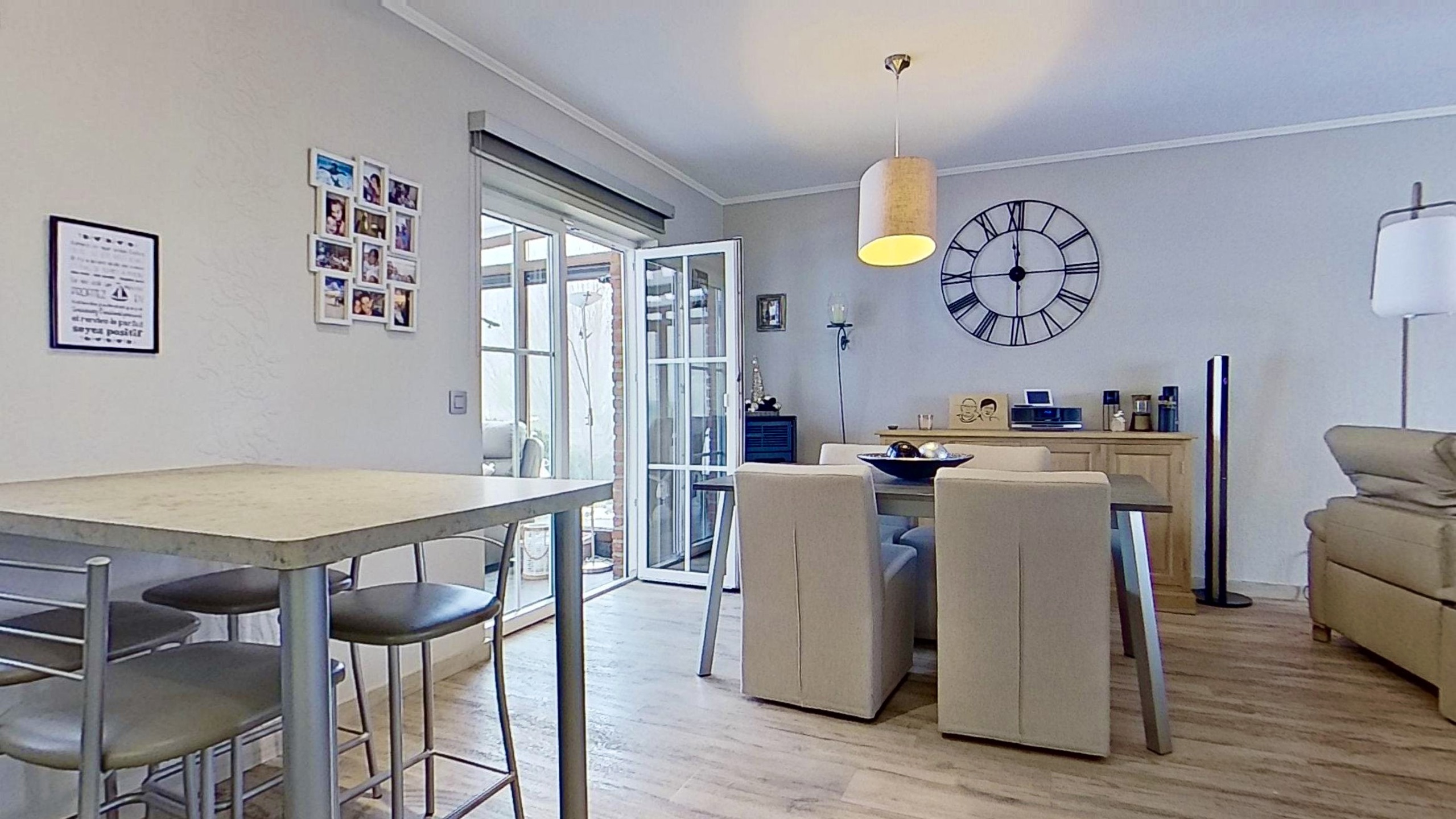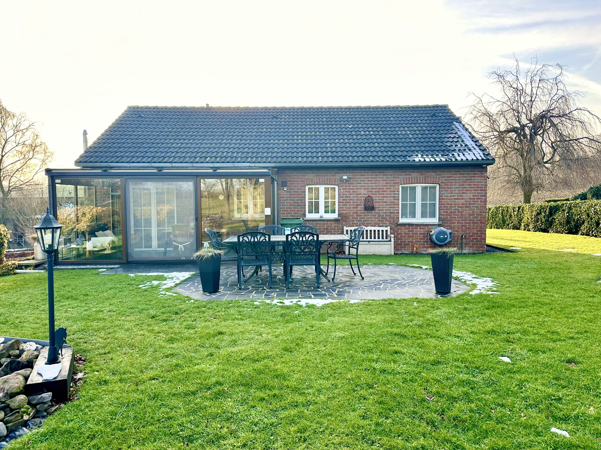 Impeccablement entretenue par ses propriétaires, quasi autonome d’un point de vue énergétique, cette villa lumineuse jouit d’un environnement calme ainsi que d’une vue imprenable sur la campagne baelenoise. Entièrement construite de plain pied, elle se compose d’un séjour chaleureux avec cuisine ouverte équipée et poêle à pellets en option. Dans le prolongement du séjour, vous découvrirez un véranda donnant sur un jardin paysager avec étang et vue dégagée. Côté nuit se trouvent deux chambres, un bureau (/ troisième chambre d’appoint), une salle de bain avec douche à l’italienne et un wc séparé. Un grenier de rangement, deux garages avec portes sectionnelles, une buanderie spacieuse et une seconde salle de douche complètent l’habitation. Sans travaux à prévoir, la villa dispose en outre d’excellents parachèvements : système d’alarme complet, châssis PVC DV (2016), toiture isolée en excellent état, pompe à chaleur performante et panneaux photovoltaïque garantissant une quasi-autonomie énergétique. A voir absolument! Visites programmées les mardis et jeudis de 15.30 à 17.30 : contactez l’agence MY PLACE au 087 85 84 81.
